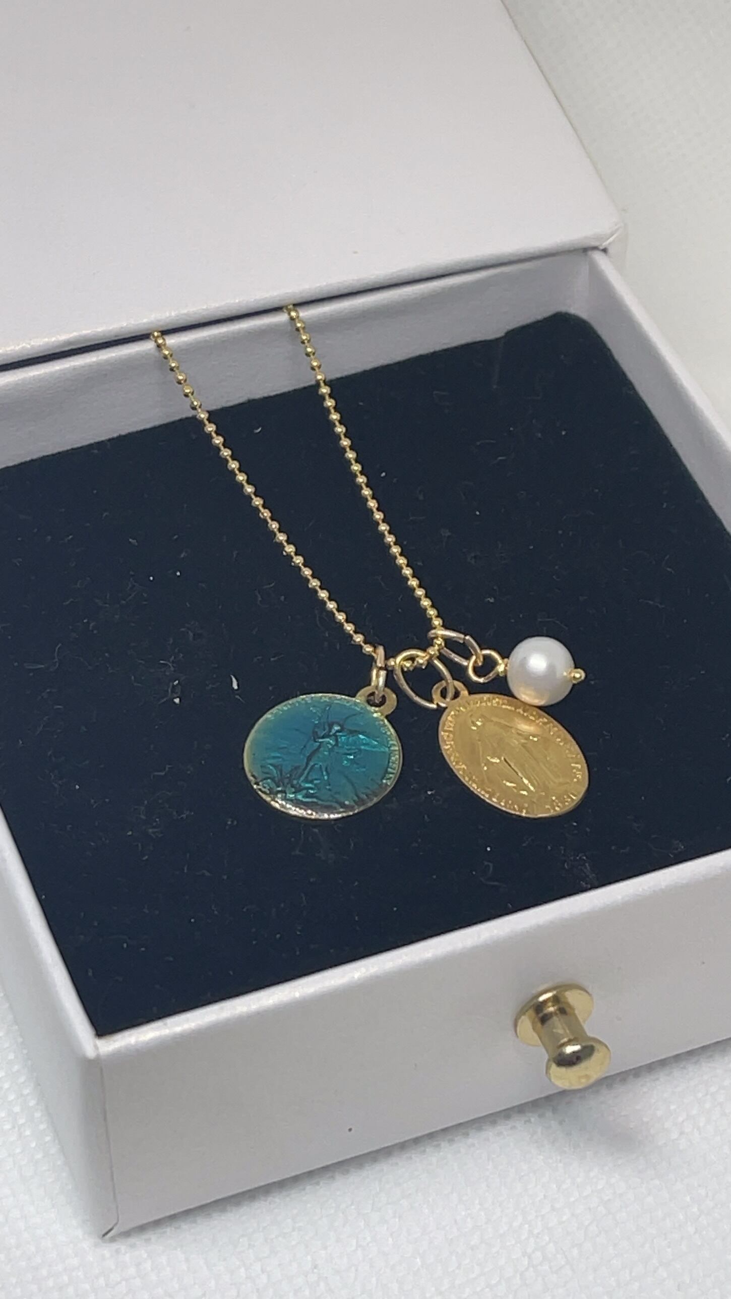 「奇跡のメダイ教会」にて購入した聖なるマリアのメダイを、