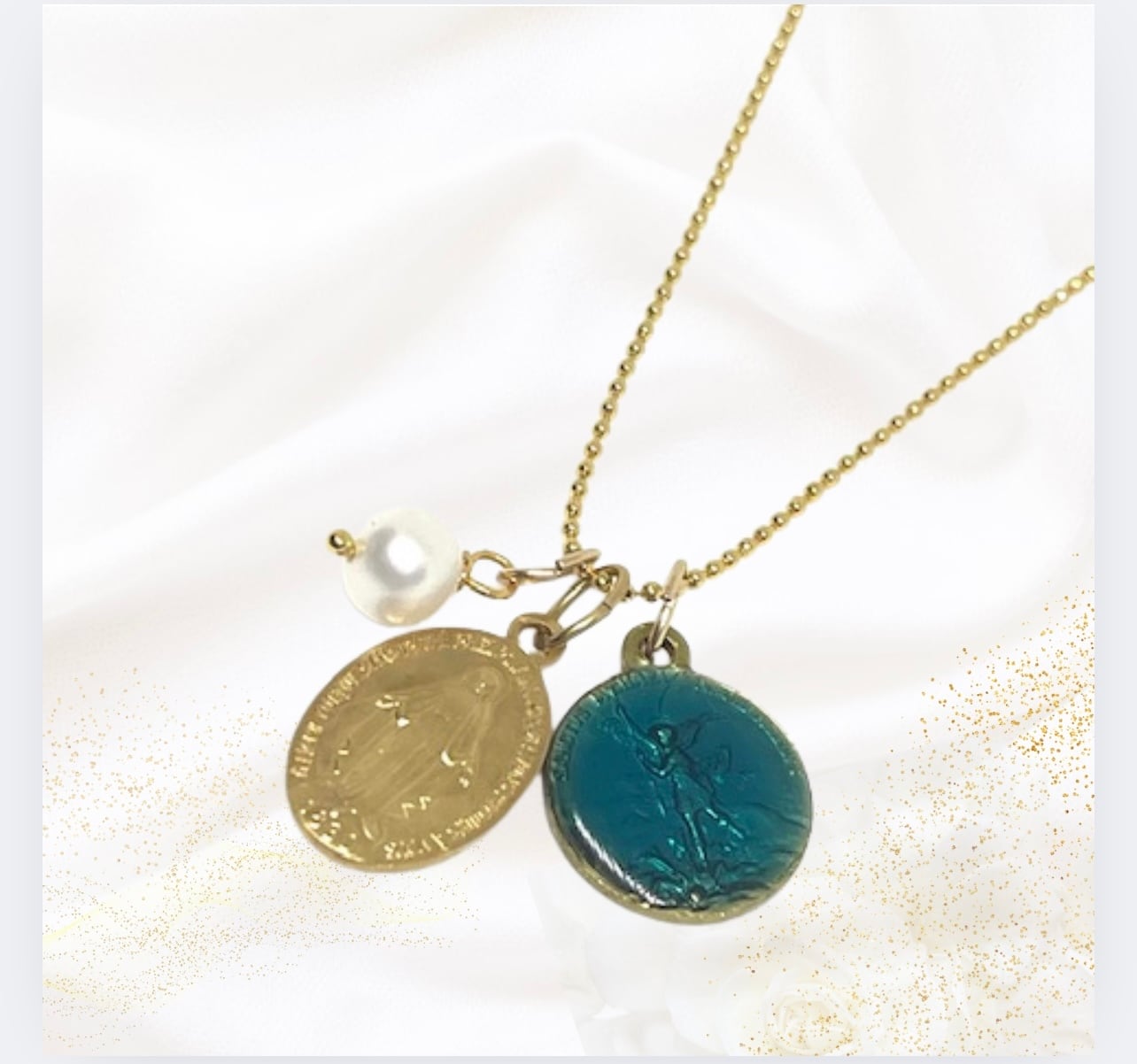 〈ミカエルの青い光をまとった守護メダイ〉