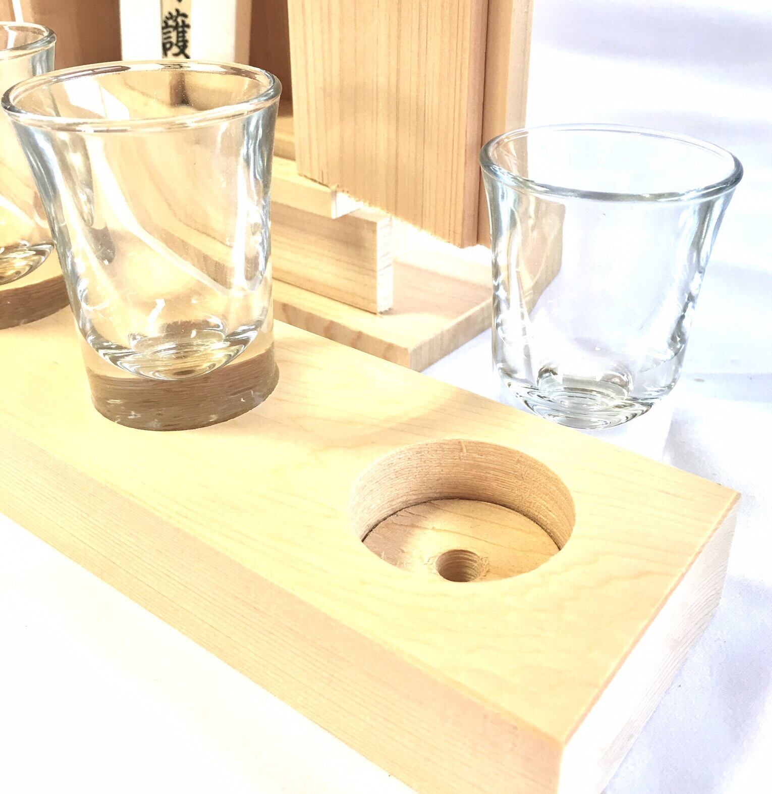 精巧に作られた型にグラスが設置される形となっております。檜の台ごとお持ちになっていただけますので、日常に中身を交換していただくことも簡単になるかと思います。